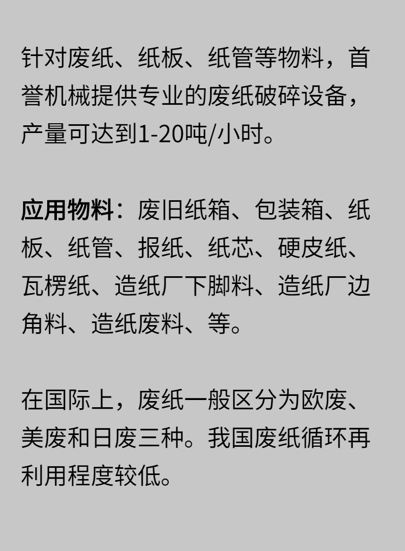 發布者:首譽 關鍵詞:廢紙破碎設備,廢紙撕碎機,紙管破碎機 瀏覽量: