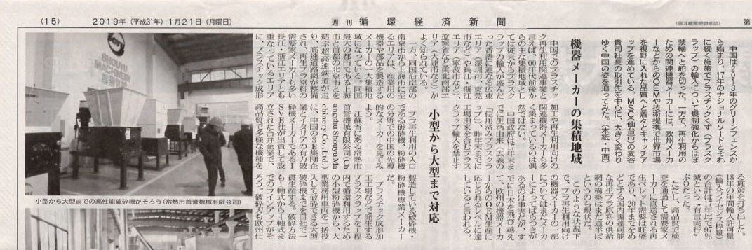 常熟首譽機械榮登《日本循環經濟新聞》報