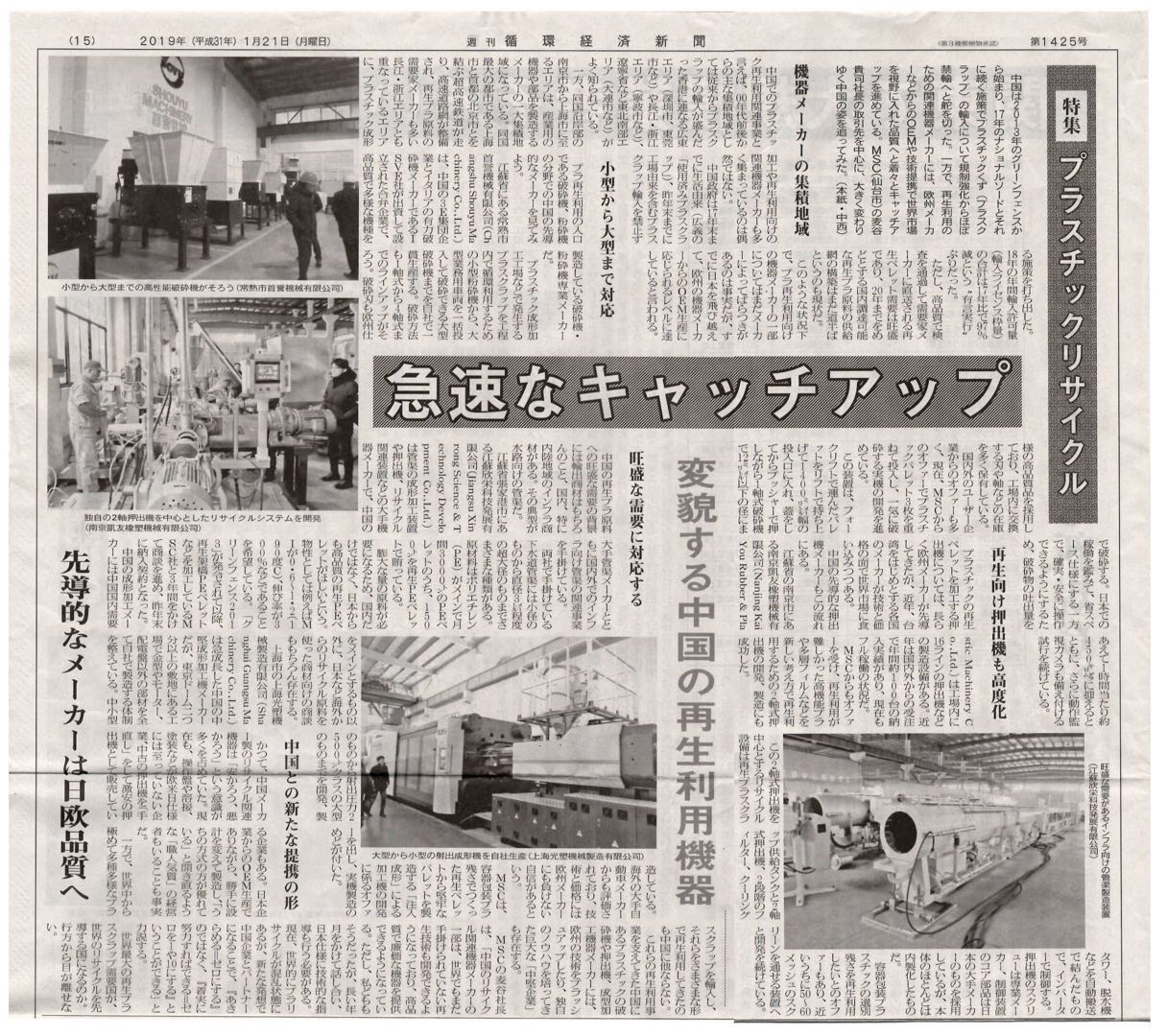 常熟市首譽機械榮登《日本循環經濟新聞》報,也展現了我司的實力,及產品在海外的熱銷度,本是熱銷環保產品,出口全球五十多個國家和地區,有日本經濟時報的助推,常熟市首譽機械將在2019繼往開來,迎來更多新機遇。